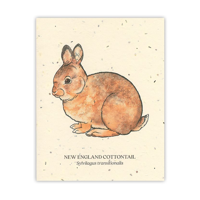 The Bower Studio's Plantable Seed Paper Greeting Card Set is printed on post-consumer paper. Choose your designs of wildlife between the New England Cottontail, Red Fox, American Toad or Whitetail Deer.