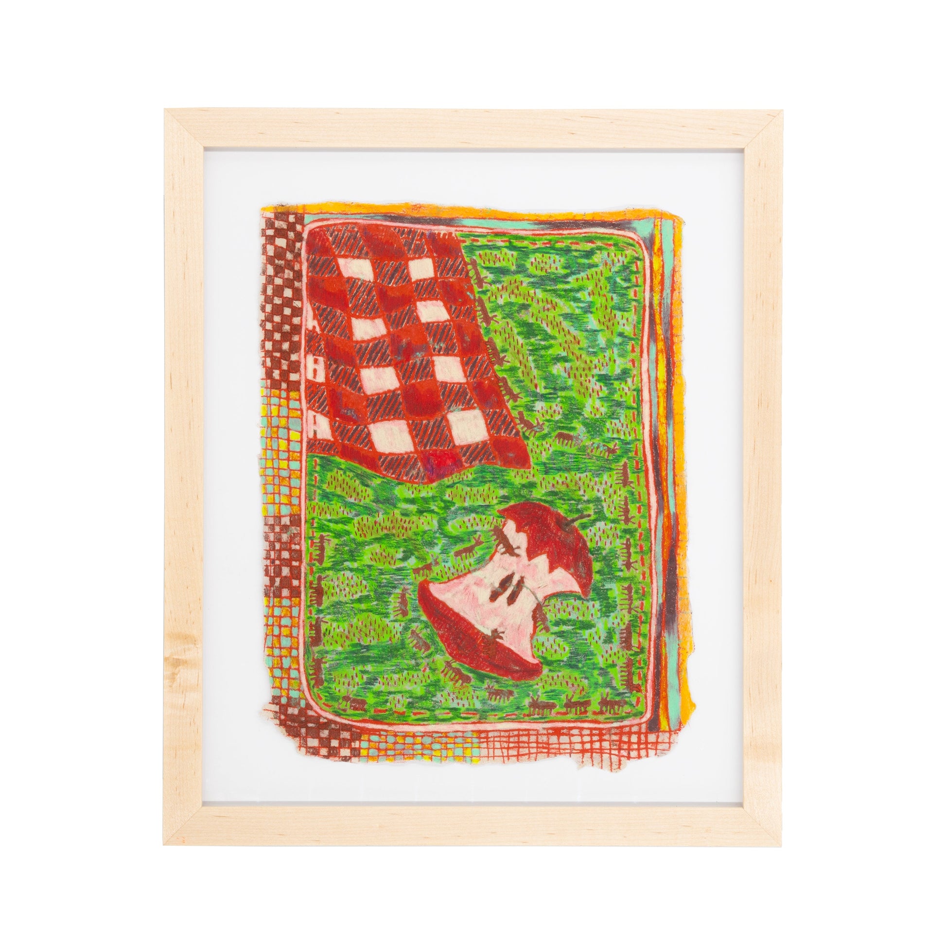 Monotype and colored pencil on handmade paper, gouche on paper mache, clay