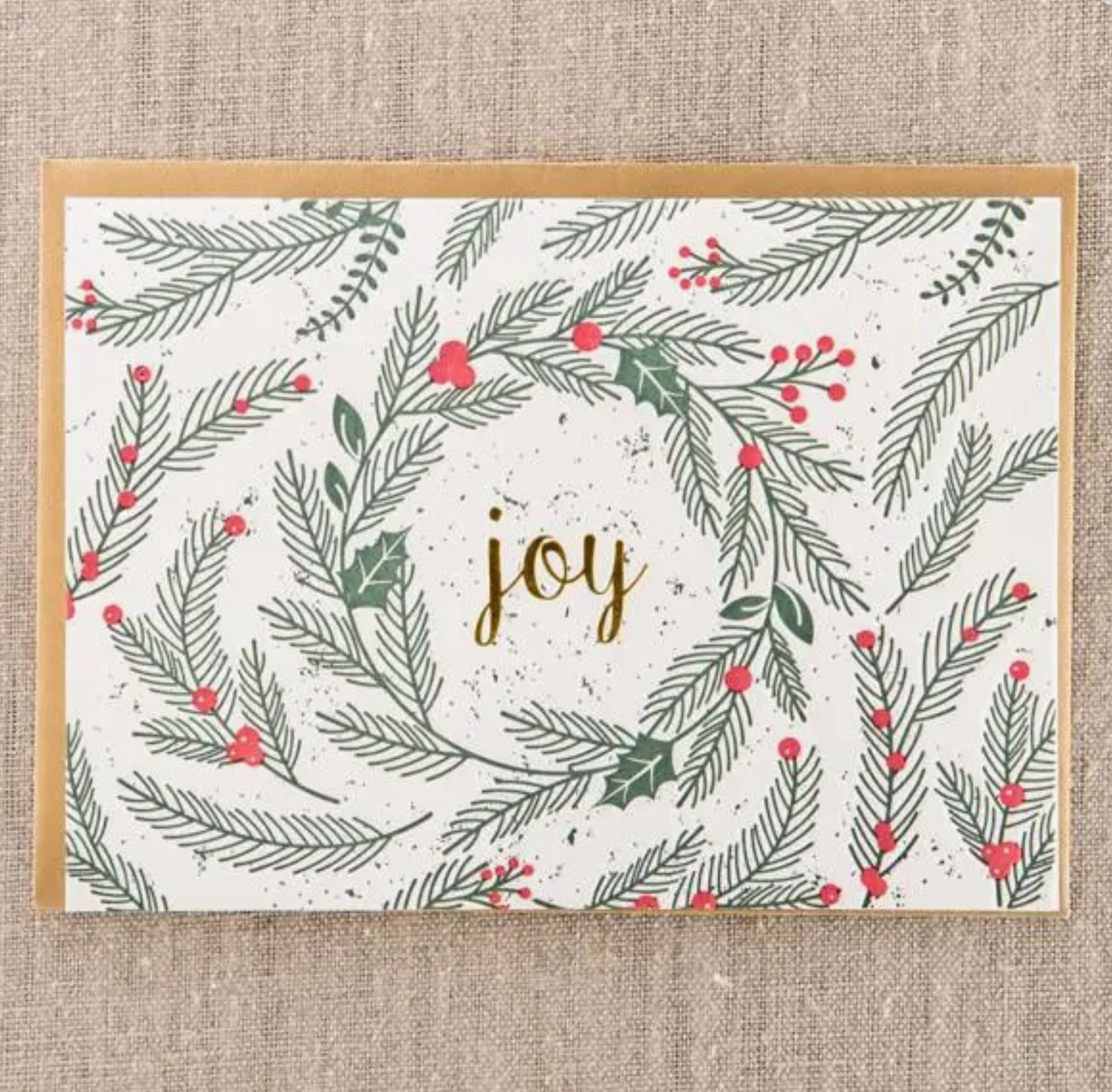 Introducing the Joy Spruce Card from Pike Street Press, handcrafted on their antique printing press for a unique vintage vibe! Add a little joy to your loved one's holiday celebration with this one-of-a-kind card!