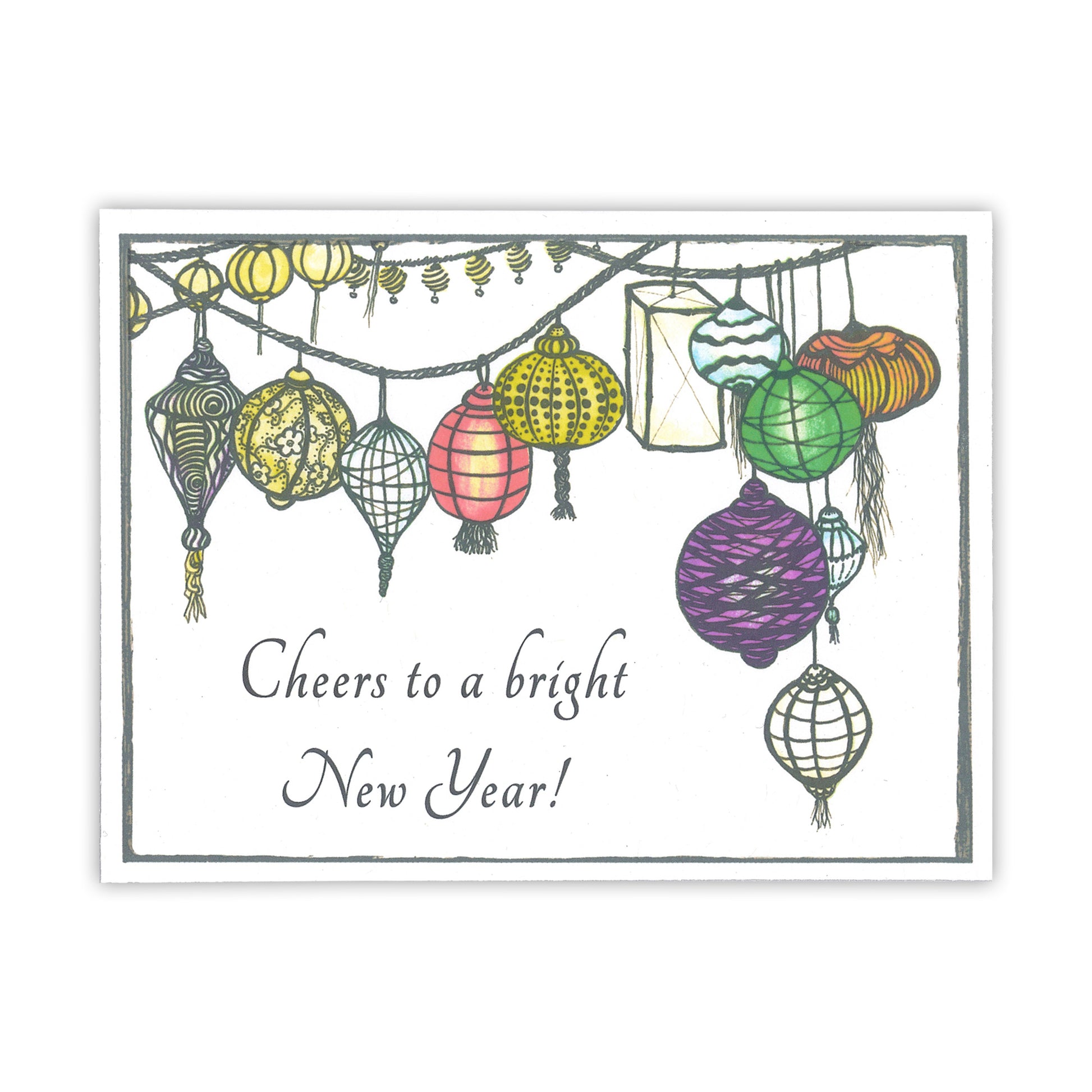Say your New Year's wishes with this festive card. Featuring bright, colorful lanterns and artwork by Eliza Lenore McIntyre, this card is sure to put a smile on your recipient's face. With a blank inside, you can customize it however you like. Cheers to a bright New Year!